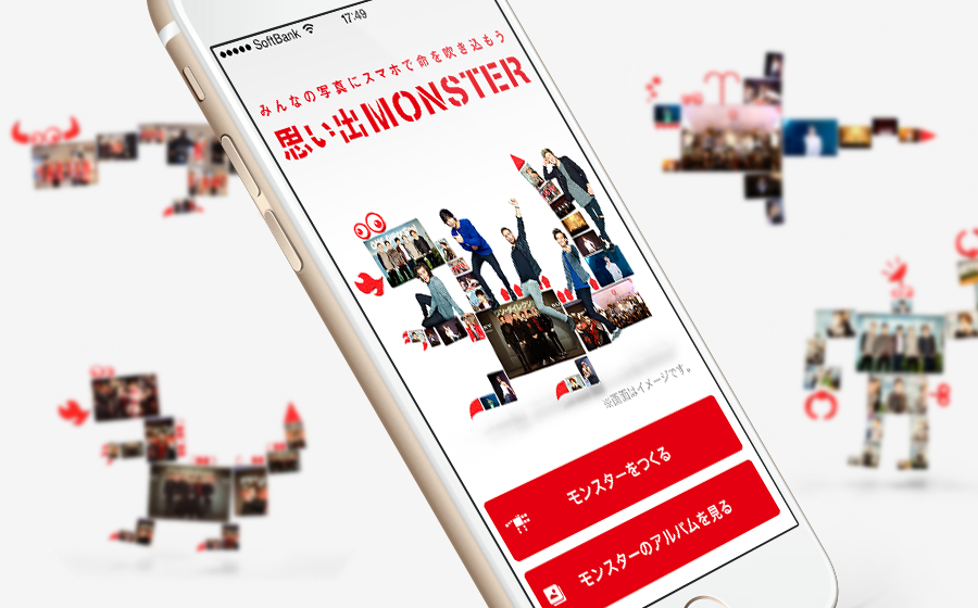 カメラロールから最大15枚の写真をアップロードし複数人でMONSTERを作成できるとても楽しいアプリとなっています。